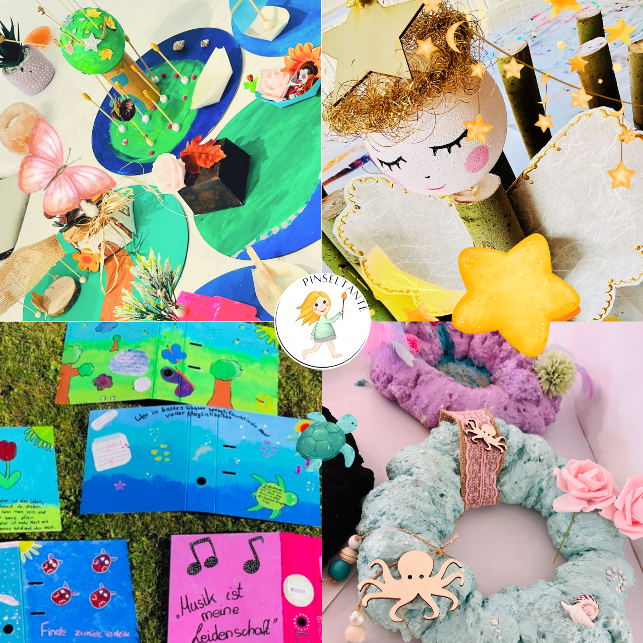Du hast ein bestimmtes Thema parat: 🐴 Pferde 🌞 Heiler Planet 🌏 Mandalas 🐠 Unterwasserwelt 🌸 Dekoobjekte 🔥 Die 5 Elemente 🦁 Mutkarten basteln… Sprich mich an, alles kann ich nicht, aber wirklich vieles mit Farben & Gestaltung